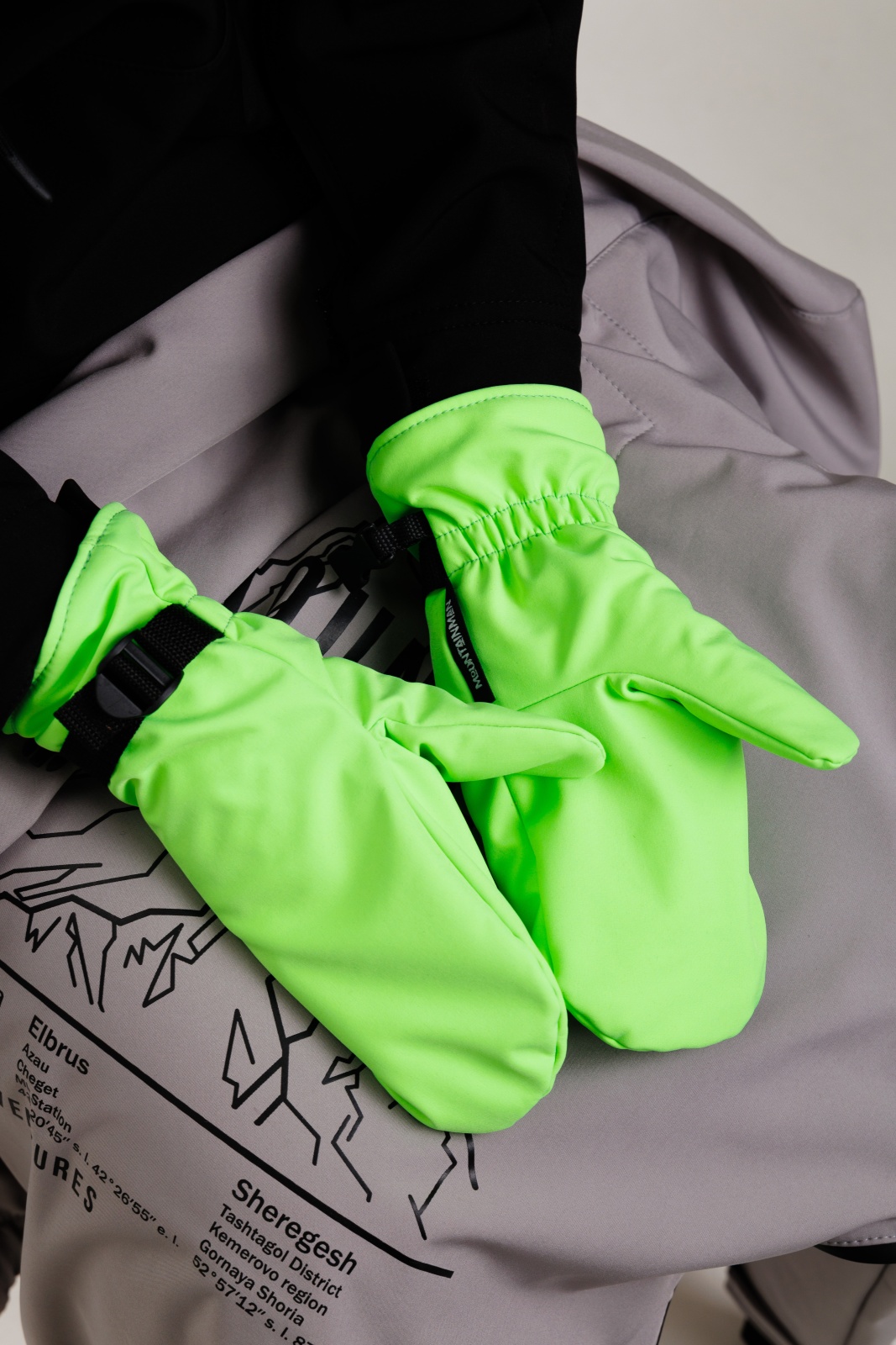 • Резинка и стропа на запястье: препятствуют попаданию снега внутрь варежек, обеспечивая дополнительную защиту.