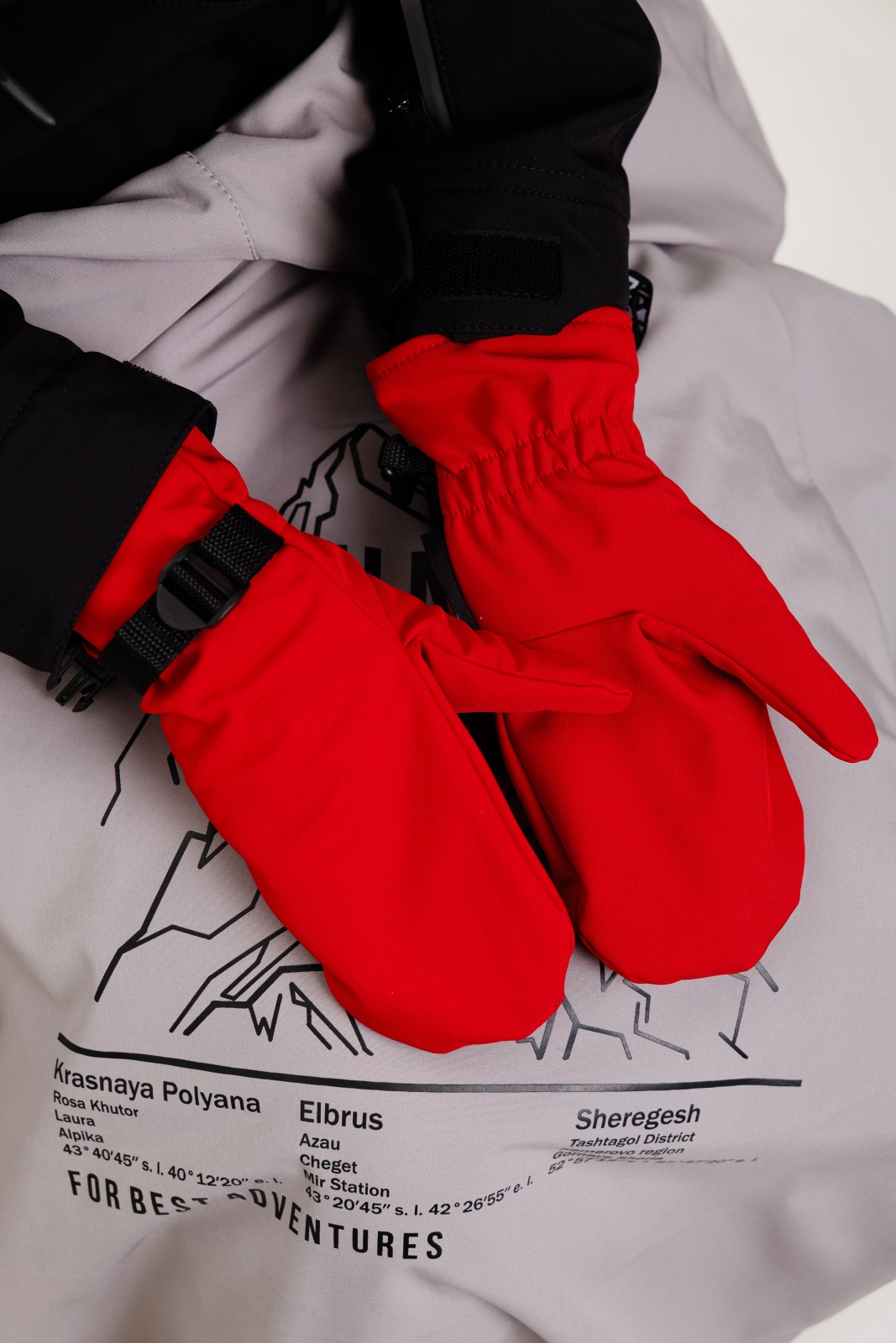 • Резинка и стропа на запястье: препятствуют попаданию снега внутрь варежек, обеспечивая дополнительную защиту.