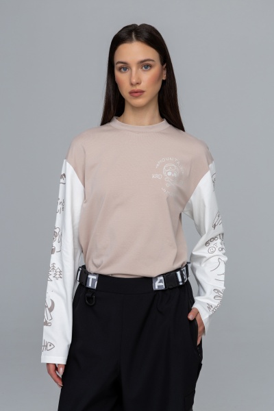 Изготовлен из кулирной глади с добавлением эластана — приятный на ощупь материал, который хорошо тянется и дышит. Такой лонгслив комфортен при температуре от +15 до +30°C и станет отличным вариантом на весну, лето и тёплую осень. Принт добавляет характер изделию, а грамотный уход сохранит его надолго.