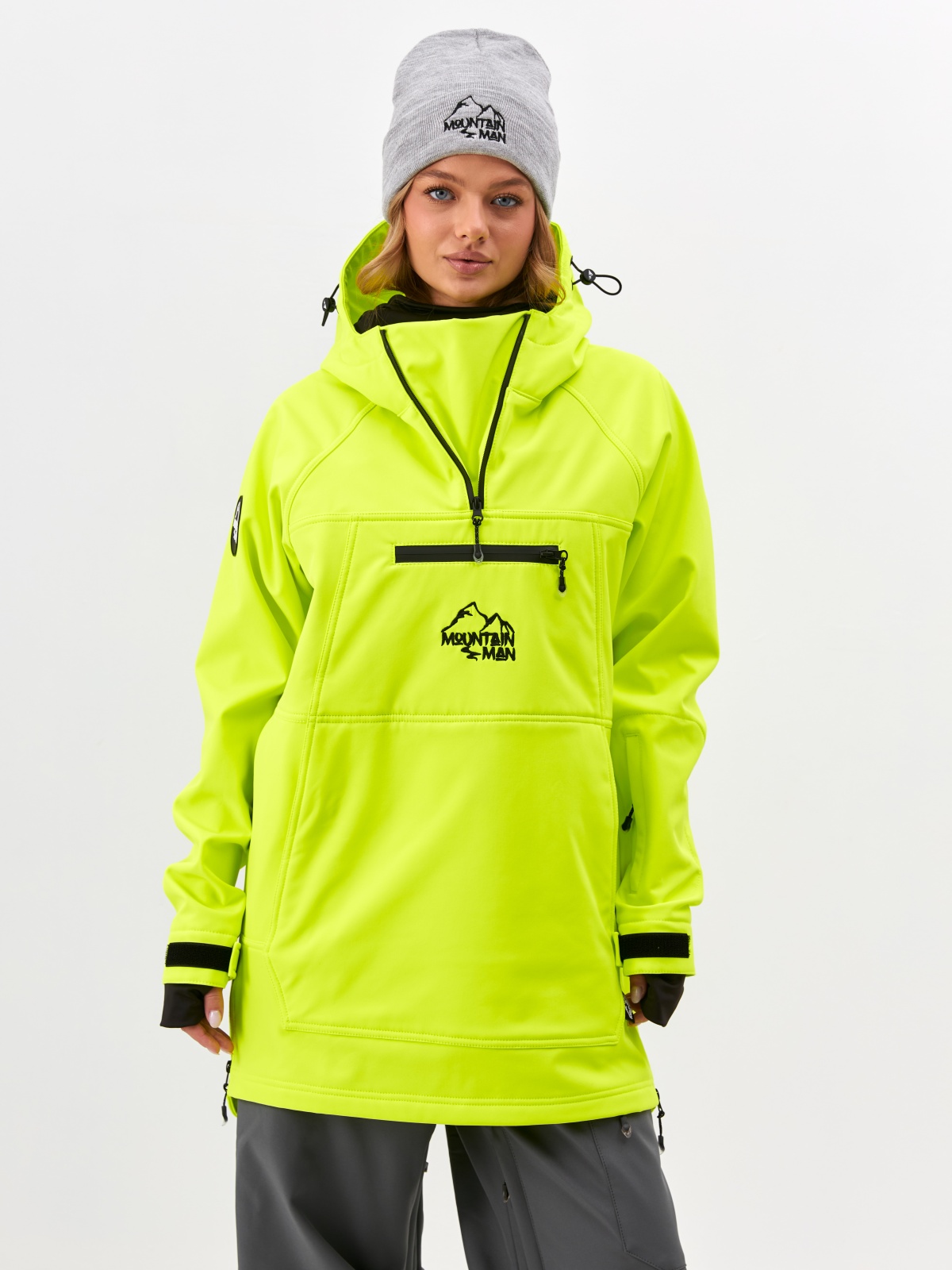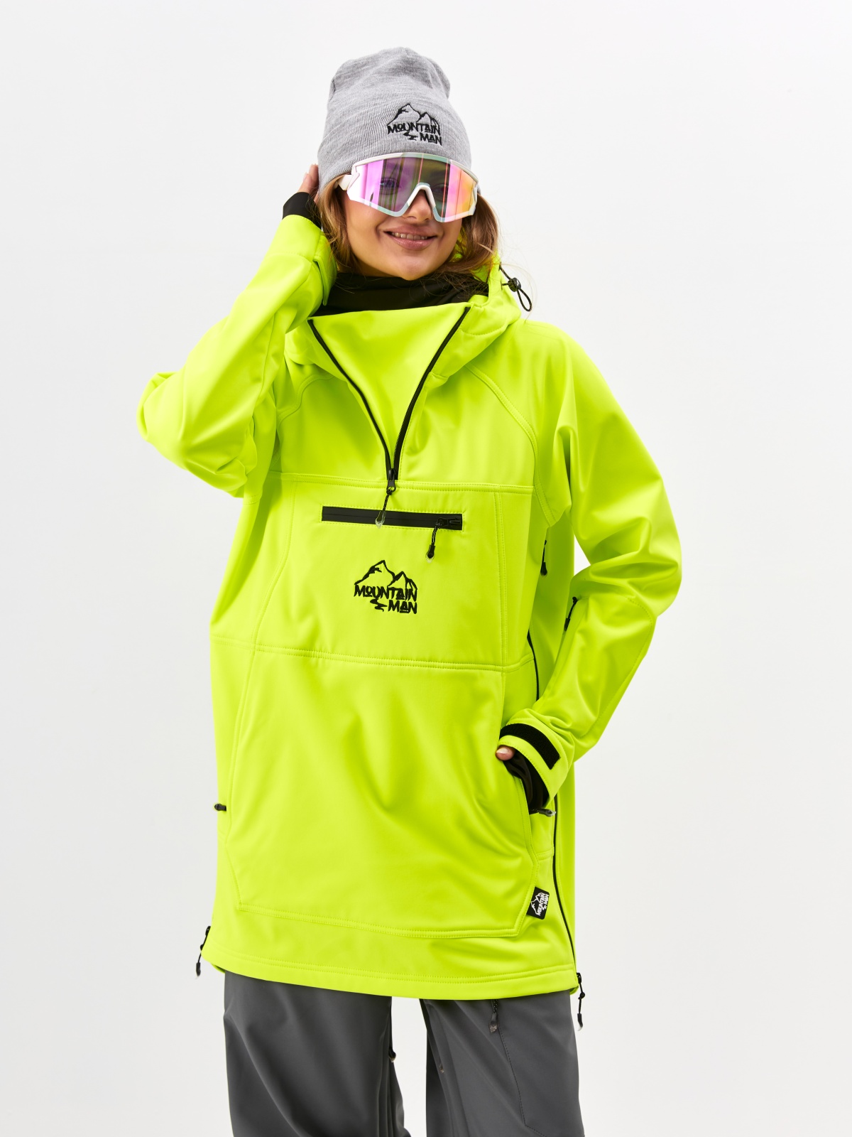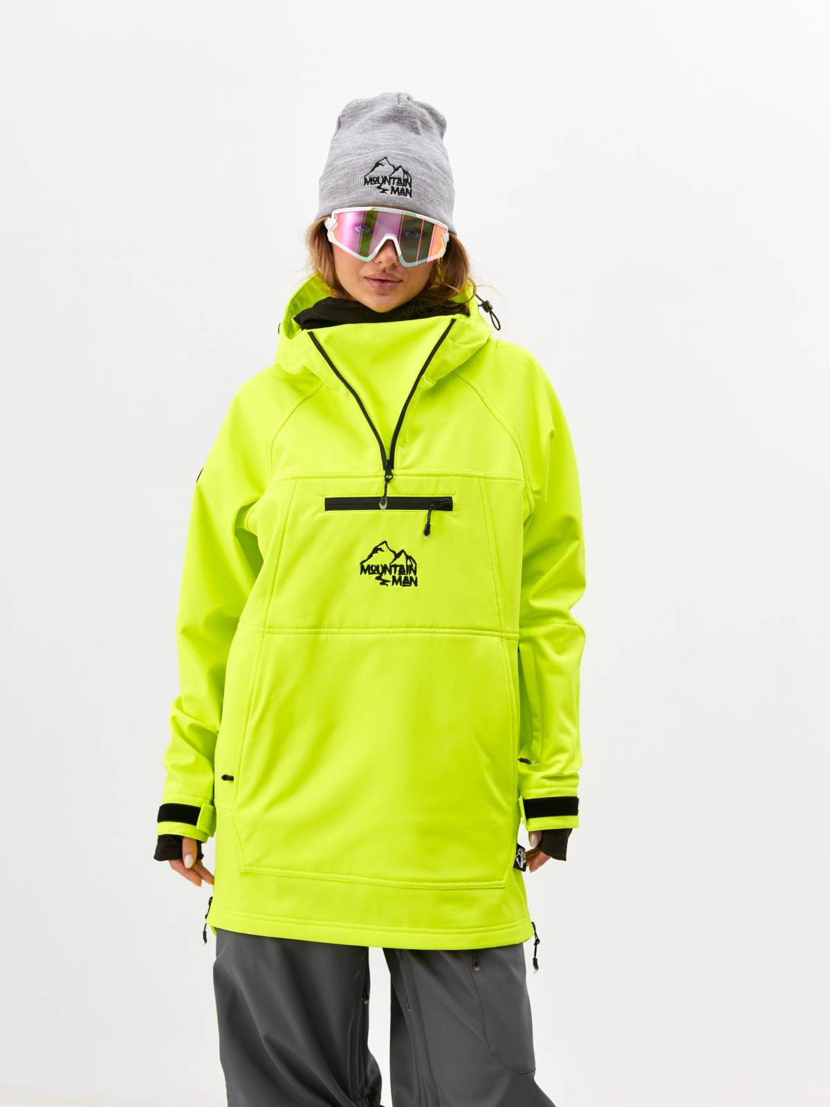 Спортивный анорак унисекс свободного кроя от MOUNTAIN MAN, производится в России. Анорак выполнен из профессиональной мембранной ткани Softshell - хит весна/лето2022